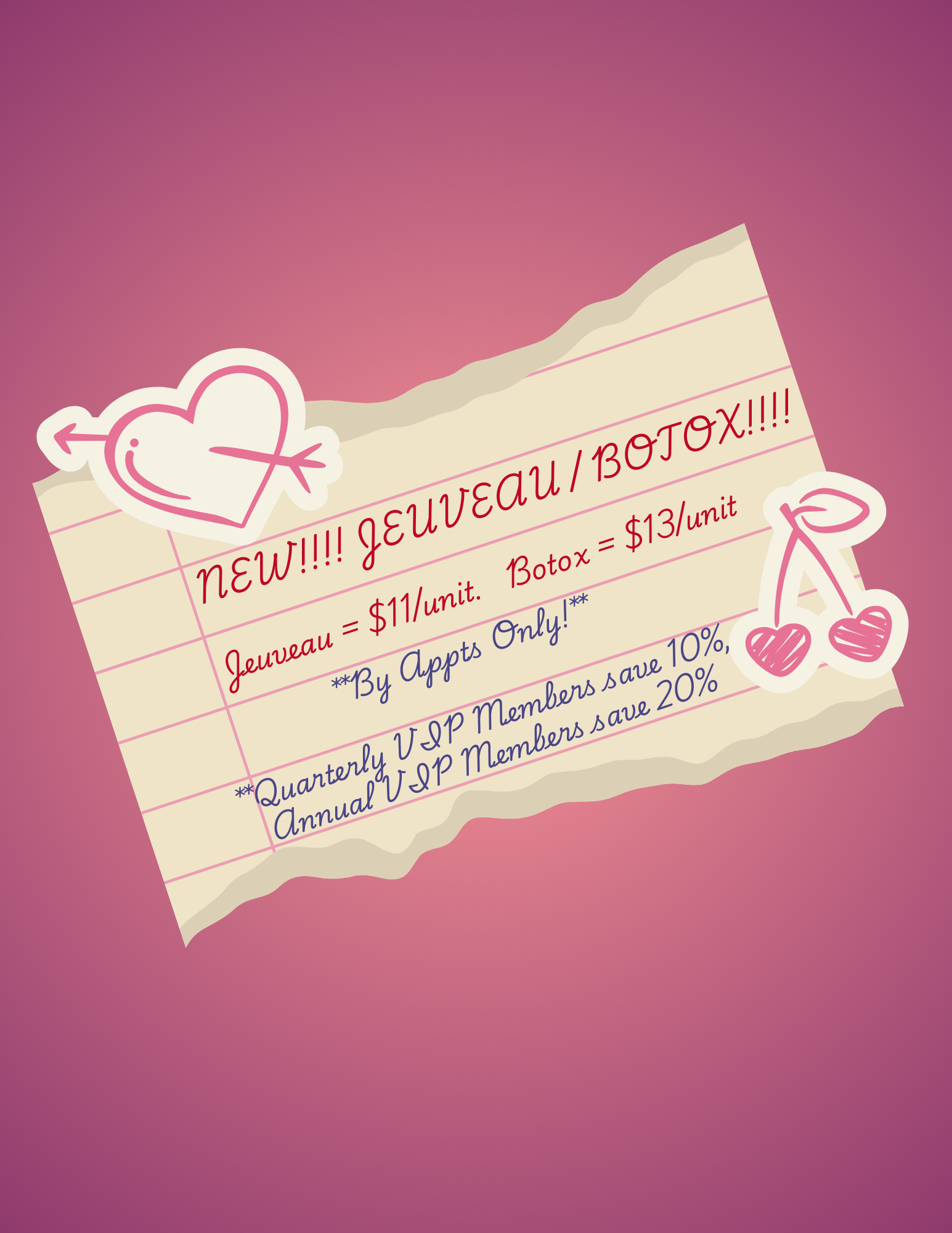 Smooth fine lines and wrinkles with Botox® and Jeuveau®, two FDA-approved neuromodulators designed to help you achieve a refreshed, youthful appearance. These treatments work by temporarily relaxing facial muscles, reducing the appearance of crow’s feet, forehead lines, and frown lines.